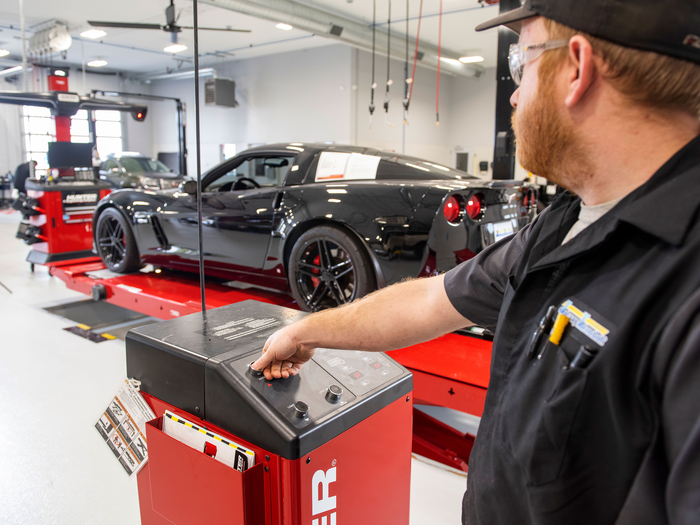 Complete alignments faster with Hunter's synchronized wheel alignment machine and alignment rack.